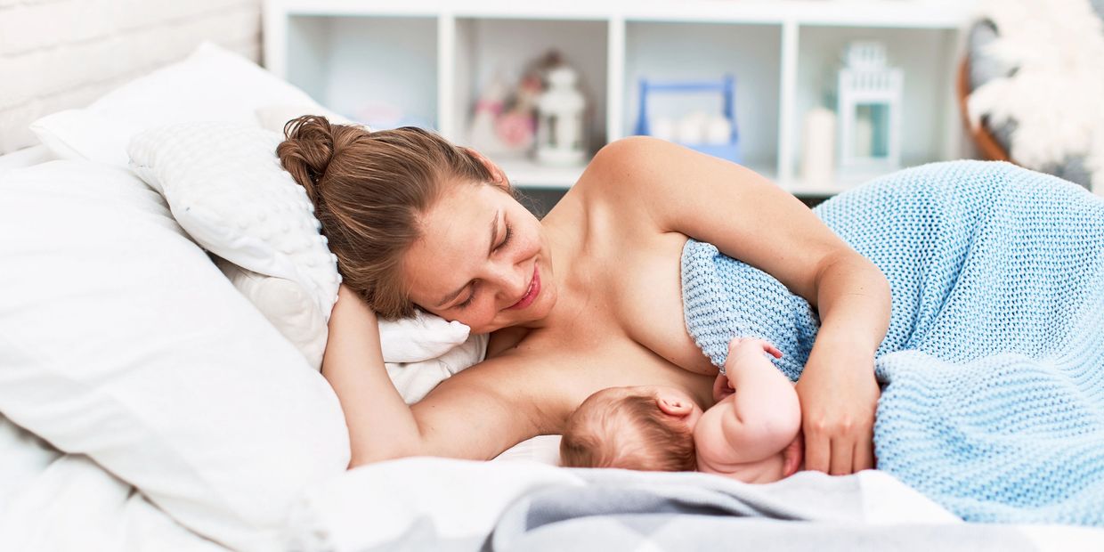 - Thirdly, the instinctive position that a breastfeeding mother and baby adopt whilst bed sharing is protective. Baby is placed near the breast and mothers curl their body around the baby in a C shape. This position provides a safe space for baby with mum’s arm above baby’s head protecting him/her from pillows above and mother’s thigh below baby’s feet stop him sliding down in the bed. A bottle-feeding mother and baby do not naturally adopt this same positioning